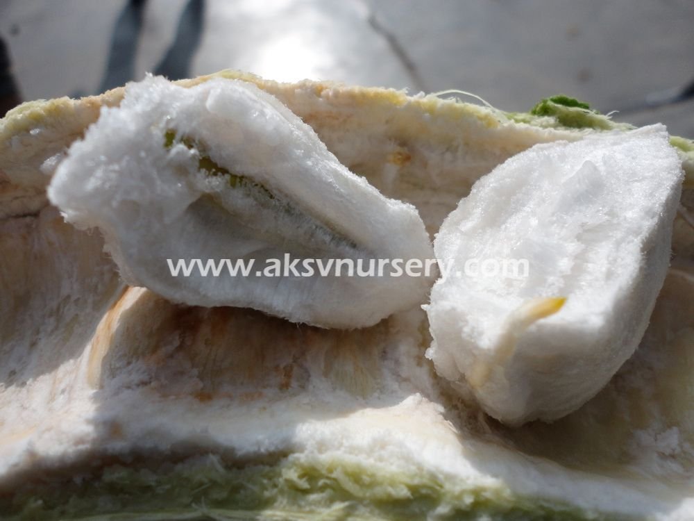 A large attractive tree with spreading branches and lovely white and yellow pompom type flowers. Between each leaflet there is a nectary gland on the leaf rachis. The pods look similar to a tamarind pod. A nitrogen fixing tree, produces bean pods up to 3 FT long which contain sweet, juicy, white pulp that has a soft cotton wool texture and tastes of vanilla ice-cream. “A delectable snack that comes in its own natural wrapper” which is loved by children. The seeds commonly germinate while the fruit is still attached to the tree. If you look carefully, you can see the bright green of the first leaves put out by the seed while it is still inside the fruit!